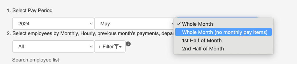 - Whole Month Exclusion: You can use the Whole Month (no monthly pay items) option to exclude a scheduled pay item from being included.