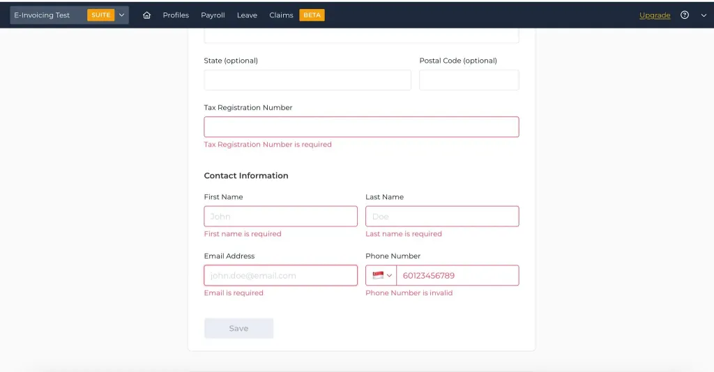 If you are a Malaysian company using Talenox, you will now be asked to complete a few fields before saving your Company Details.