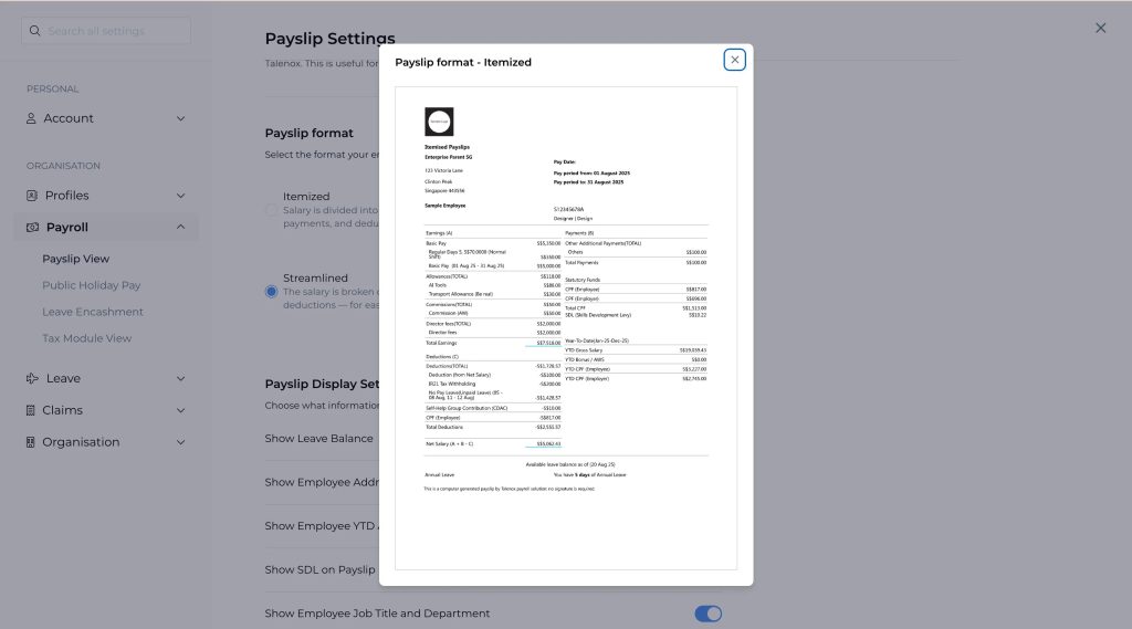 Choose between Itemised or Streamlined formats, depending on how much detail your company prefers.