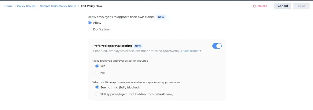 We heard from many of you that claim approvals can get messy when several approvers are involved. This update helps clean that up and gives both admins and employees clearer control.