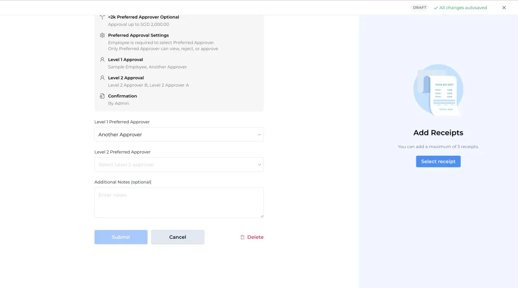 Employees will now see a section in the claim submission view where they can select their preferred approver.