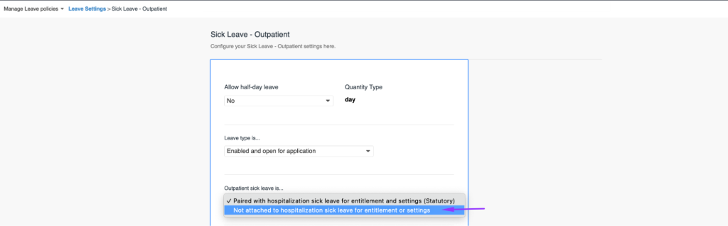 Going forward, this pairing of hospitalisation and outpatient sick leave will be the default setting in Talenox, ensuring alignment with statutory requirements. However, recognising that companies may have unique leave policies, the system provides flexibility. Employers can easily toggle this default setting off and on by navigating to Leave Settings > Sick Leave – Outpatient to detach it from Sick Leave – Hospitalisation.