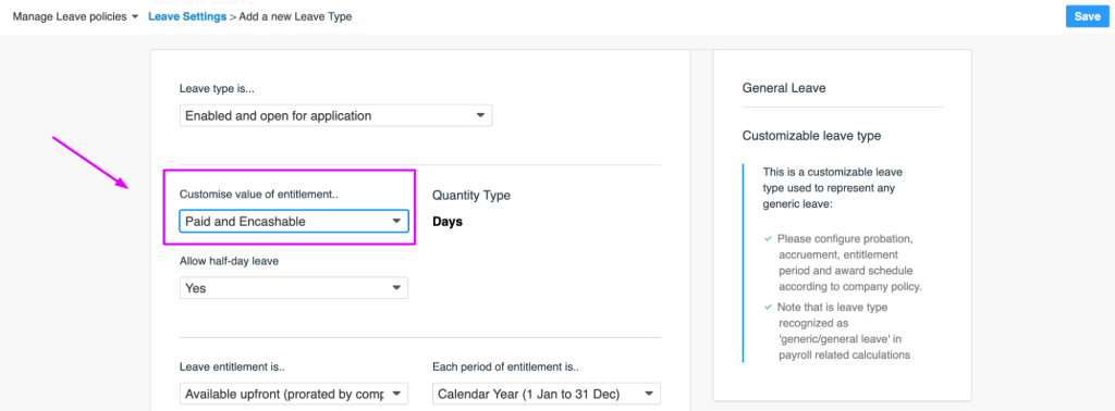 We’re thrilled to introduce another cool new things to the ‘General Leave’ type settings, providing users with more control over payroll calculations. When creating a ‘General Leave’ type, a new section called “Customise value of entitlement…” allows you to select one of the following options: